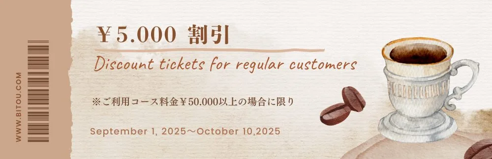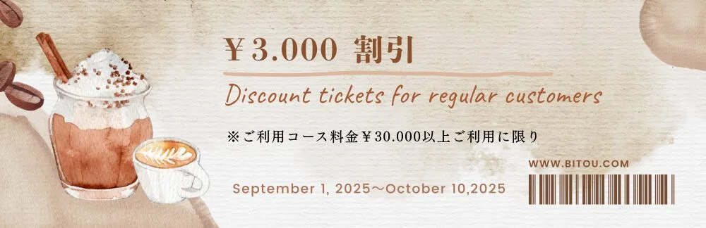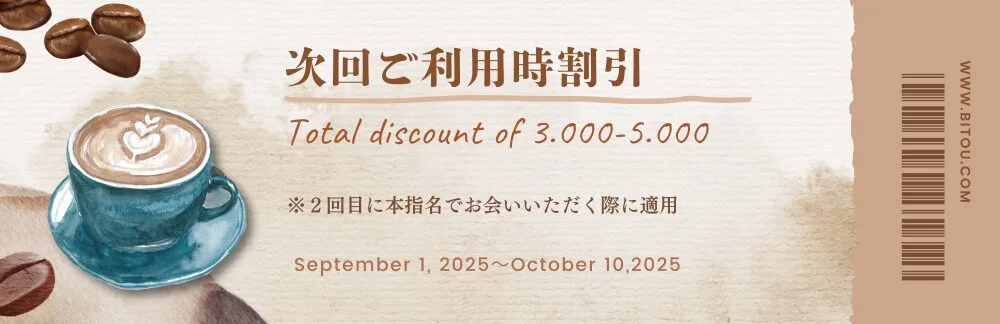 ◆イベント期間中にコース総額¥30.000以上のご利用があった「微糖ご利用歴有り」のお客様には、次回同じキャストを本指名でご利用の際に、上記①or②の割引を適用させていただきます。