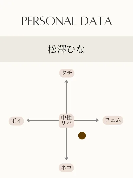 | 性格 | 基本的には人が好きで人懐っこい性格ですが、時には猫のように自由で気まぐれな一面も持ち合わせています。 繊細な部分もありますが、繊細さは弱さではなく、人の心の機微を敏感に察することができる強みだと捉えています。 |